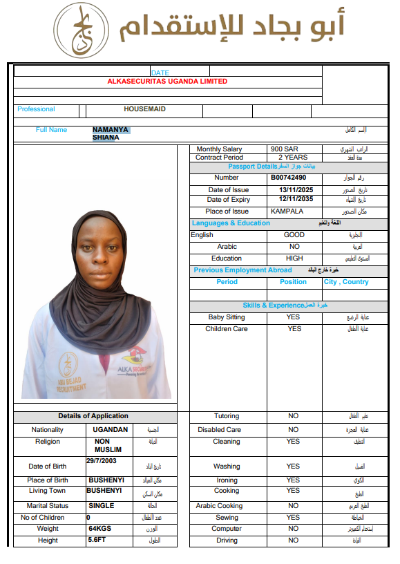 الجنسية : اوغندا