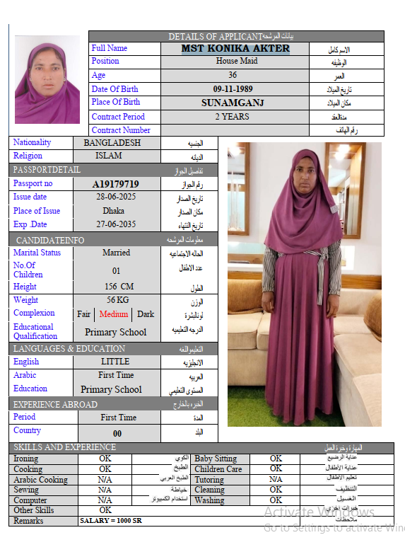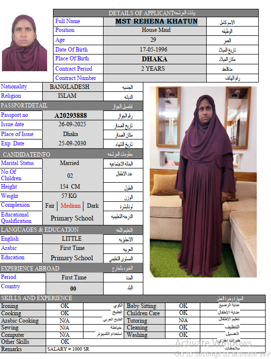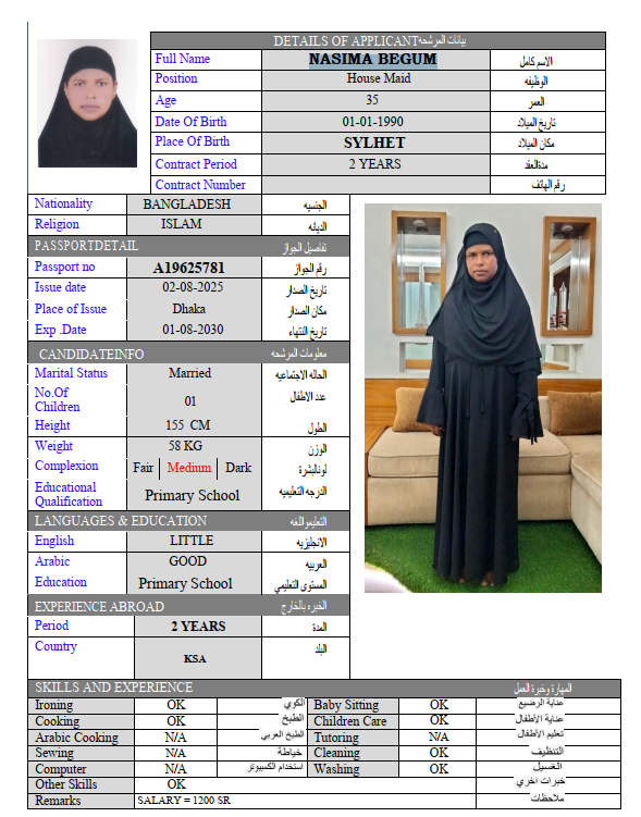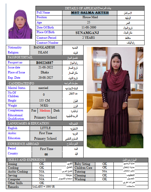 المهنة : عاملة منزلية