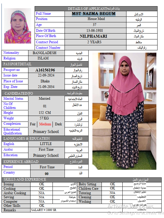 الجنسية : بنجلادش