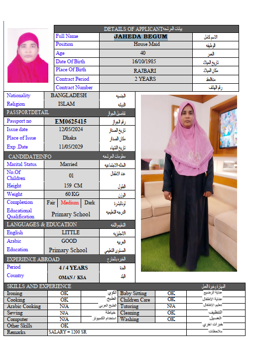 سعر الاستقدام : 7799 ريال