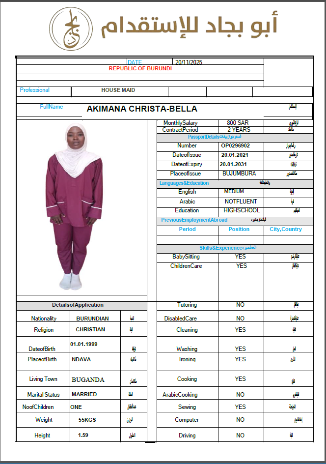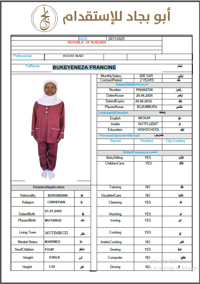 الجنسية : بوروندي