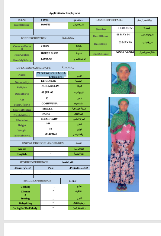 الجنسية : إثيوبيا