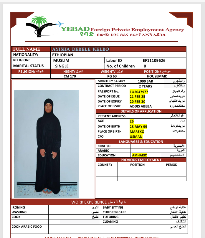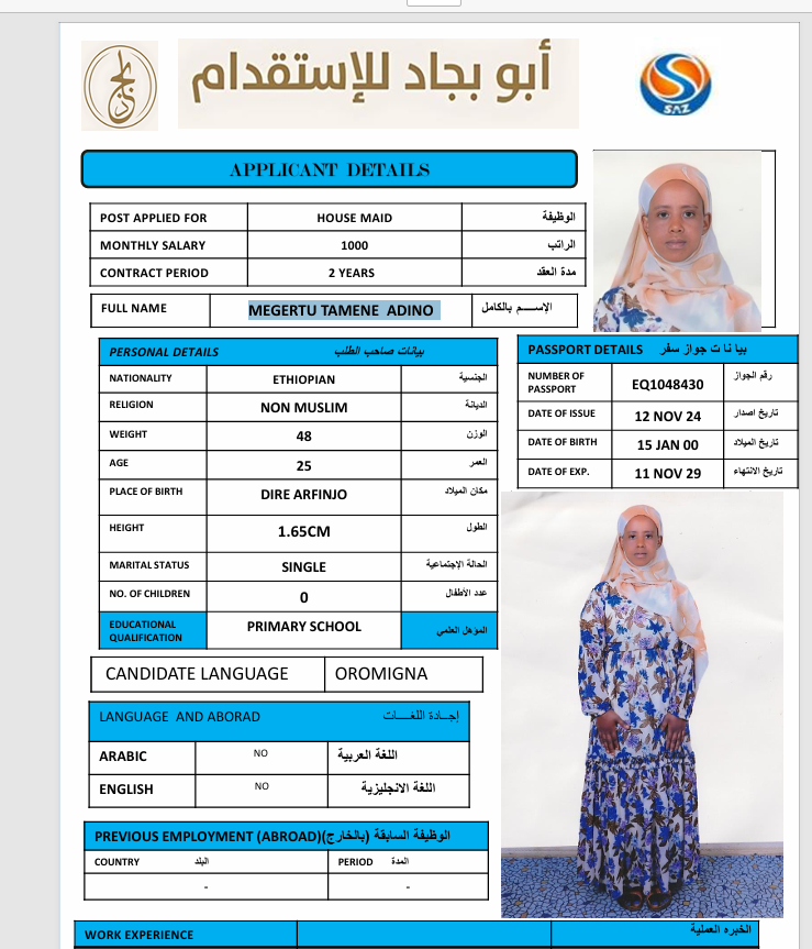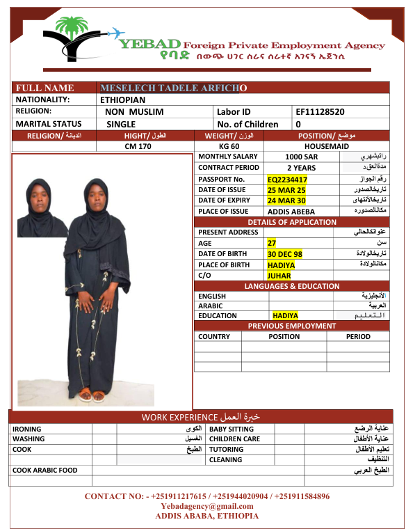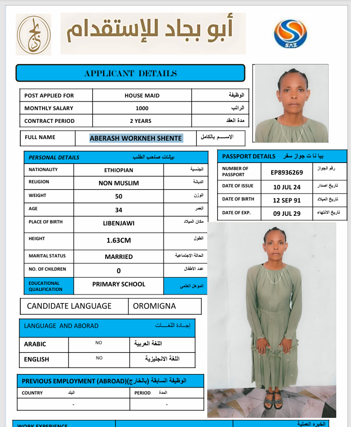 الجنسية : إثيوبيا
