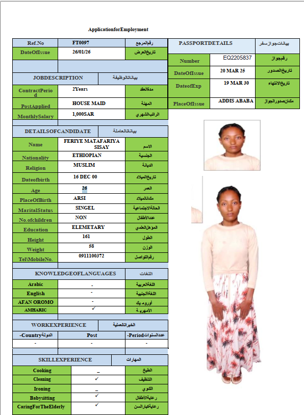 FERIYE MATAFARIYA SISAY
