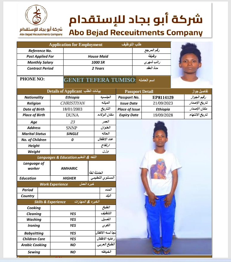 المهنة : عاملة منزلية