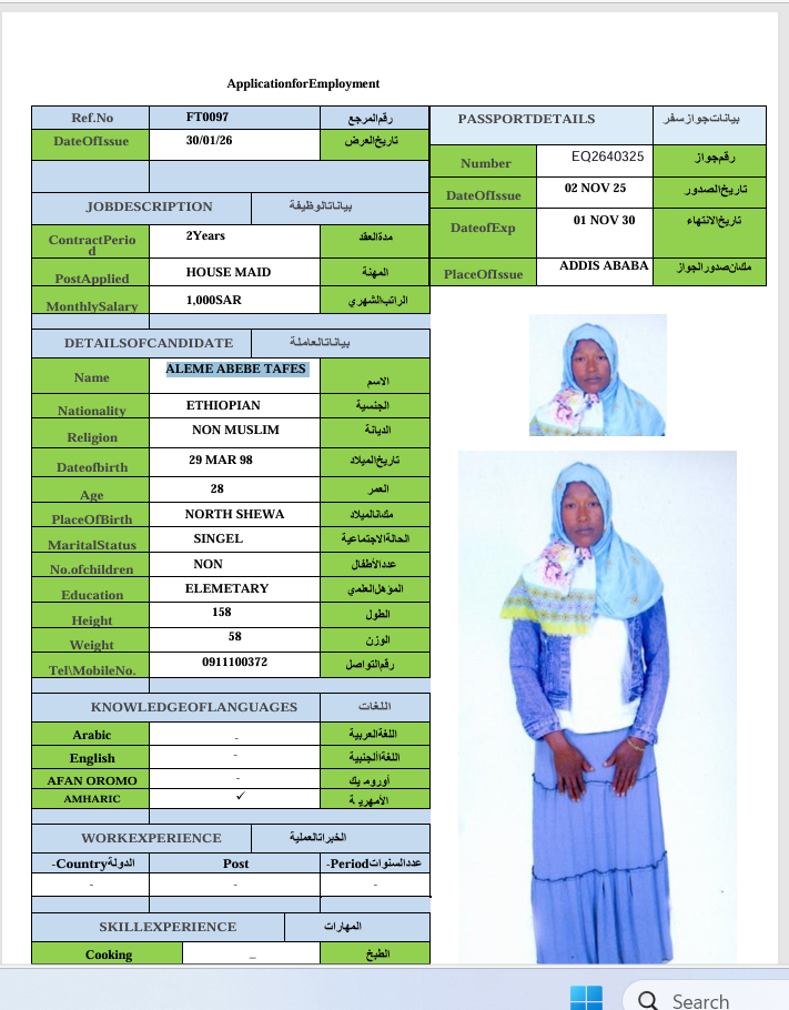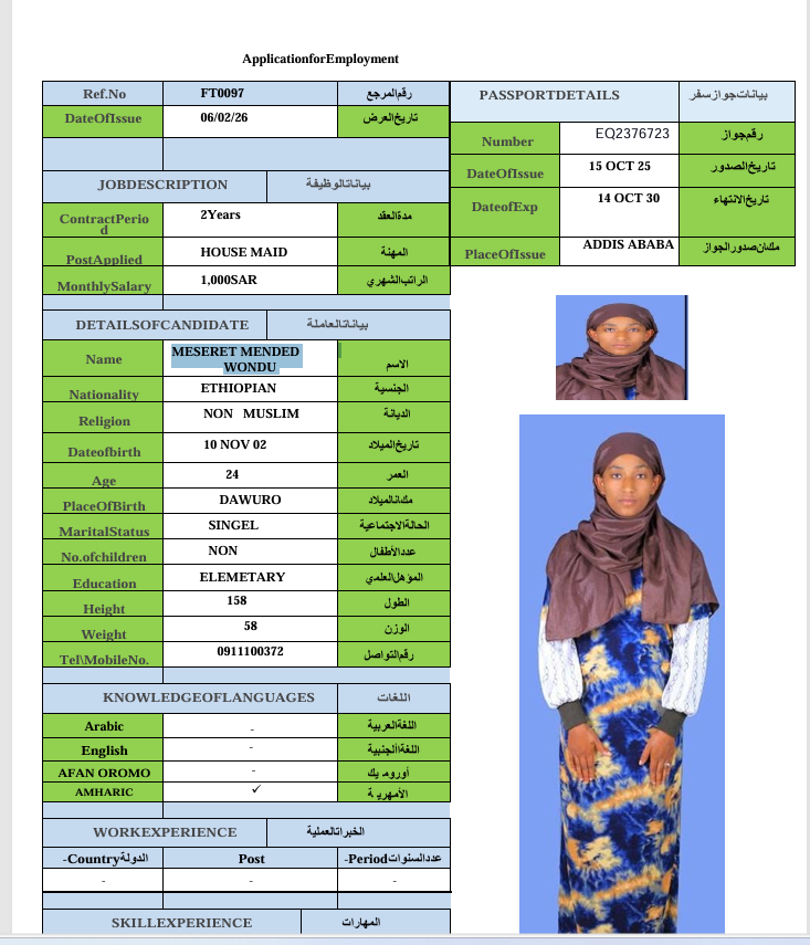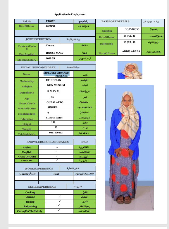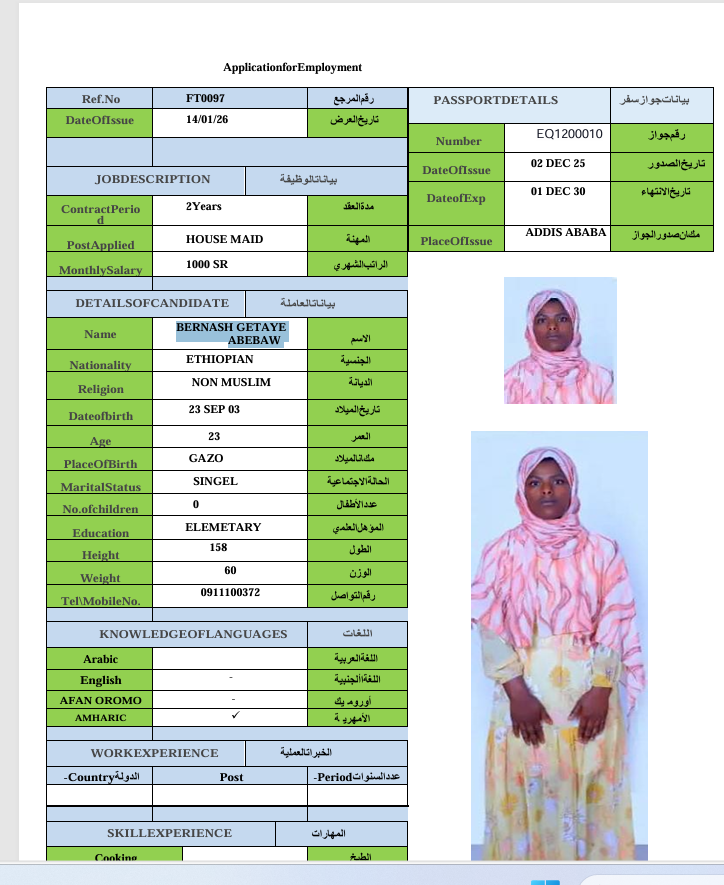 الجنسية : إثيوبيا