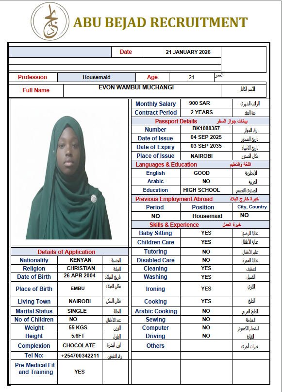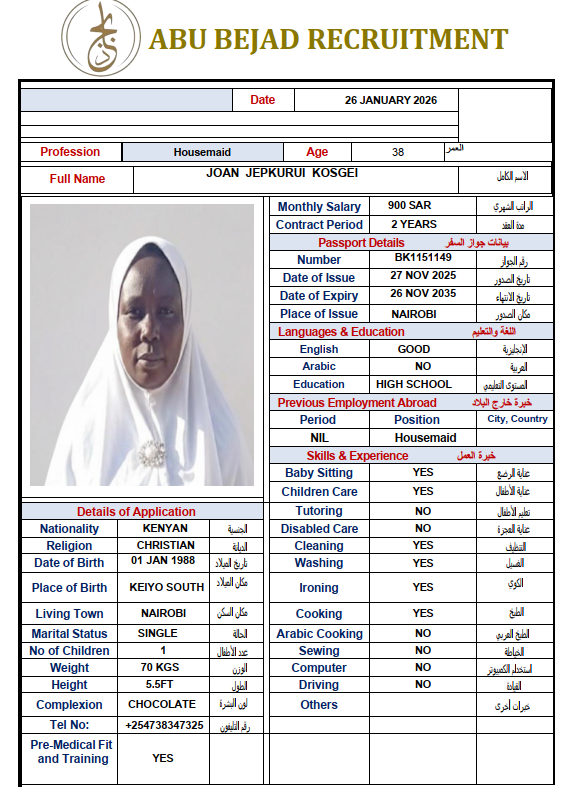 الجنسية : كينيا